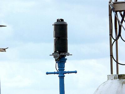 Ostseite: Runder blauer gusseiserner Mast mit dem auf der Mastspitze aufgesetztem